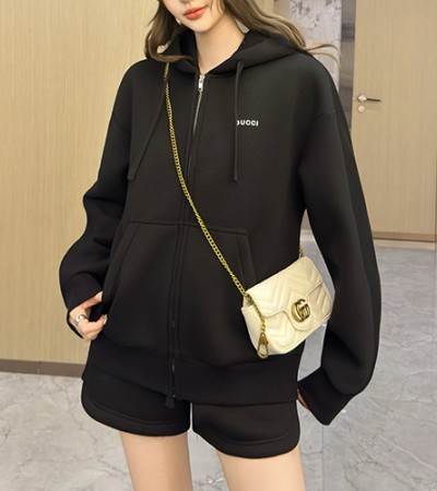 • [홍콩명품.Gucci] 구찌 25SS 로고 여성 후드 집업 자켓 + 미니 쇼츠 핫팬츠 상하의 세트 (블랙), BM23084, MC, 레플리카의류,미러급사이트