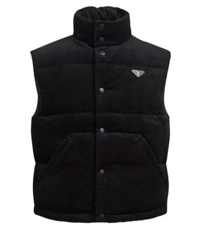 [홍콩명품,PRADA] 프라다 25SS 삼각로고 코드류이 골덴 다운 패딩 조끼 베스트 (블랙), BM23135, JL, 레플리카의류,미러급사이트 > 남자의류