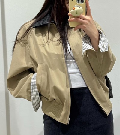 • [홍콩명품.BOTTEGA VENETA] 보테가베네타 25SS 로고 여성 인트레치아토 카라 봄버 자켓 (베이지), BM23257, PG, 레플리카의류,미러급사이트