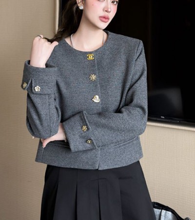 • [홍콩명품.CHANEL] 샤넬 25SS 로고 여성 울 라운드넥 자켓 (그레이), BM23291, MC, 레플리카의류,미러급사이트