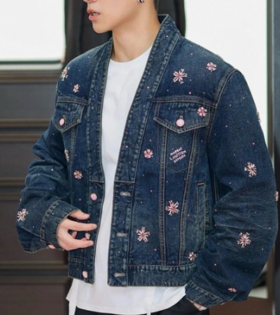[홍콩명품.LOUIS VUITTON] 루이비통 25SS 로고 플라워 장식 V넥 데님 자켓, BM23322, KB, 레플리카의류,미러급사이트 > 남자의류