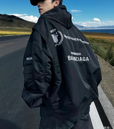 [홍콩명품.BALENCIAGA] 발렌시아가 25SS 로고 자수 솜패딩 후드 봄버 자켓 (블랙), BM23341, KB, 레플리카의류,미러급사이트 > 남자의류