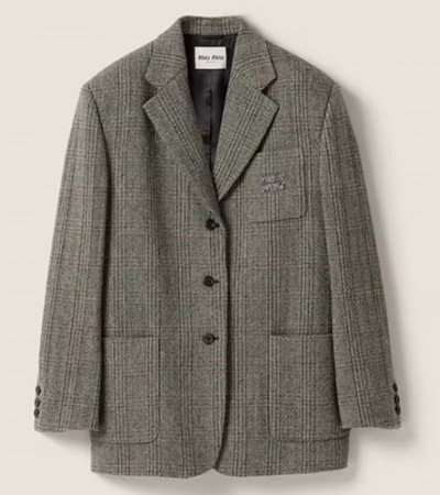 • [홍콩명품,MIU MIU] 미우미우 25SS 로고 여성 울 캐시미어 정장 자켓 (그레이), BM23345, JL, 레플리카의류,미러급사이트