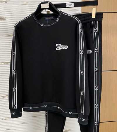 [홍콩명품.LOUIS VUITTON] 루이비통 25SS 로고 자수 맨투맨 티셔츠 + 조거 팬츠 바지 상하의 세트 (블랙), BM23381, G5, 레플리카의류,미러급사이트 요약정보 및 구매
