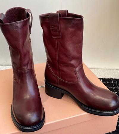 [홍콩명품,MIU MIU] 미우미우 25SS 로고 여성 레더 가죽 굽 구두 부츠 (3컬러), SE5842, GHS, 명품스니커즈,운동화,구두,로퍼,하이탑,신발 > 여성몰