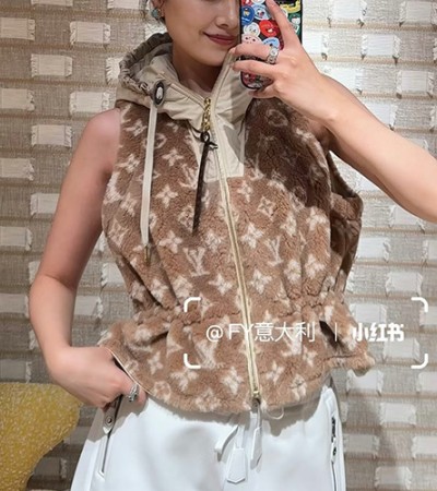 • [홍콩명품.LOUIS VUITTON] 루이비통 25SS 로고 여성 모노그램 플리스 후드 조끼 베스트 1AIP56 (카라멜), BM23466, MC, 레플리카의류,미러급사이트