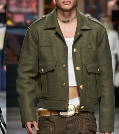 • [홍콩명품.DSQUEARED] 디스퀘어드 25SS 로고 캐시미어 카라 자켓 (카키), BM23583, TOM, 레플리카의류,미러급사이트