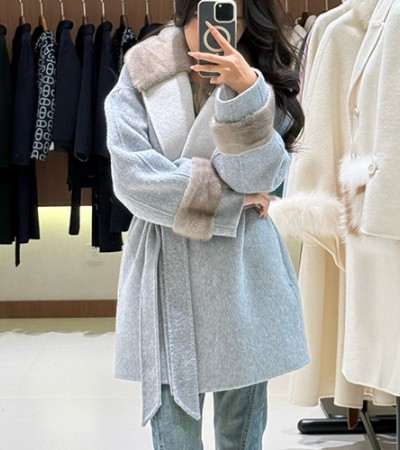 [홍콩명품,FENDI] 펜디 25SS 로고 여성 밍크퍼 카라 캐시미어 코트 자켓 (그레이), BM23596, TOM, 레플리카의류,미러급사이트 > 여성몰
