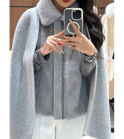 • [홍콩명품.Loro Piana] 로로피아나 25SS 로고 여성 캐시미어 탈부착 2PCS 퍼 카라 코트 자켓 (그레이), BM23600, TOM, 레플리카의류,미러급사이트