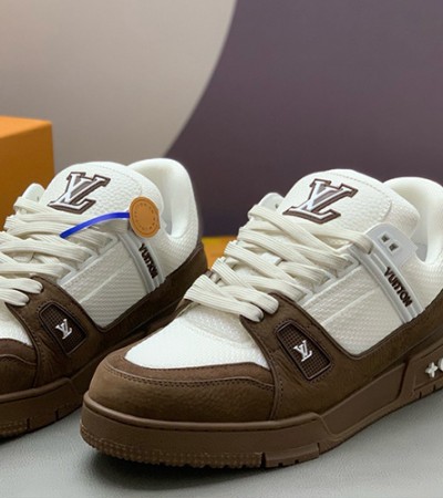• [홍콩명품.LOUIS VUITTON] 루이비통 25SS 로고 모노그램 트레이너 스니커즈 운동화 (화이트-브라운), SE5849, PMD, 명품스니커즈,운동화,구두,로퍼,하이탑,신발