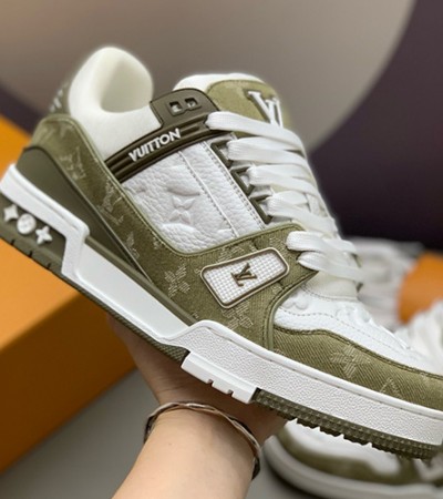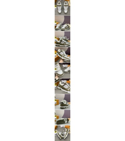 • [홍콩명품.LOUIS VUITTON] 루이비통 25SS 로고 모노그램 트레이너 스니커즈 운동화 (화이트-카키), SE5854, PMD, 명품스니커즈,운동화,구두,로퍼,하이탑,신발