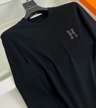 • [홍콩명품.Hermes] 에르메스 25SS 로고 레더 긴팔 티셔츠 (2컬러), BM23624, HH, 레플리카의류,미러급사이트