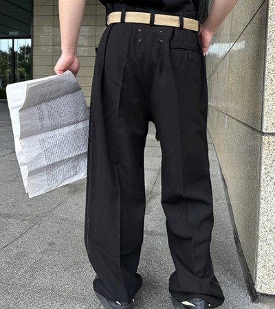 [홍콩명품.Maison Margiela] 메종마르지엘라 25SS 로고 벨트 장식 울 오버핏 팬츠 바지 (블랙), BM23706, KK, 레플리카의류,미러급사이트 > 남자의류