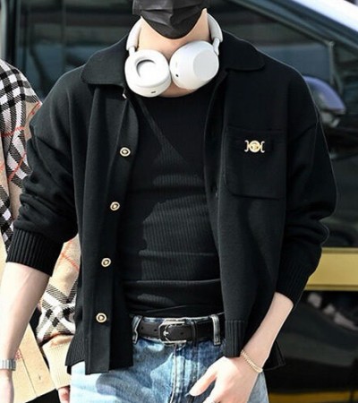 [홍콩명품.VERSACE] 베르사체 25SS 로고 카라 니트 가디건 자켓 (블랙), BM23806, KK, 레플리카의류,미러급사이트 > 남자의류