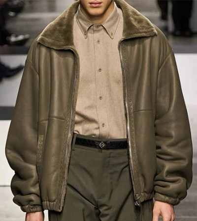• [홍콩명품,FENDI] 펜디 25SS 로고 터틀넥 시어링 레더 가죽 봄버 자켓 (브라운), BM23884, TOM, 레플리카의류,미러급사이트
