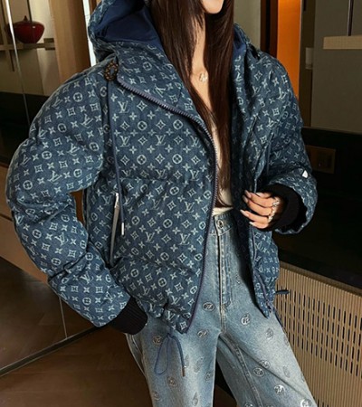 • [홍콩명품.LOUIS VUITTON] 루이비통 25SS 로고 여성 모노그램 데님 후드 다운 패딩 자켓, BM23890, MC, 레플리카의류,미러급사이트