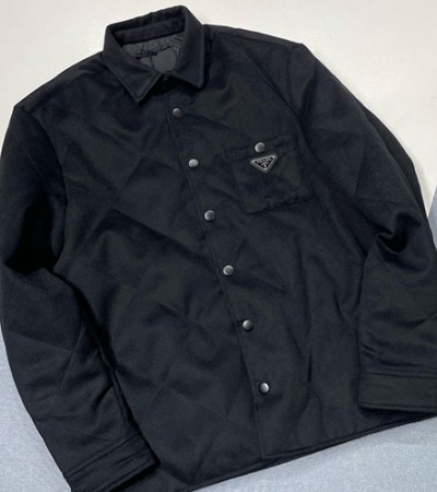• [홍콩명품,PRADA] 프라다 25SS 삼각로고 캐시미어 울 퀄팅 남방 솜패딩 (블랙), BM23950, JL, 레플리카의류,미러급사이트