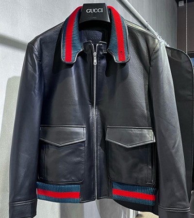 [홍콩명품.Gucci] 구찌 25SS 로고 레더 가죽 카라 봄버 자켓 (블랙), BM23978, KSM, 레플리카의류,미러급사이트 > 남자의류