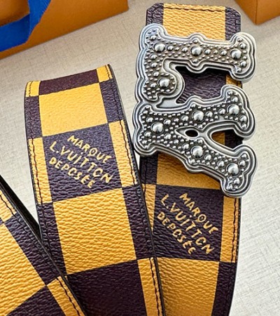 • [홍콩명품.LOUIS VUITTON] 루이비통 25SS 로고 LV Initiales 다미에 레더 가죽 리버서블 벨트 (노랑-2버클), 4.0cm, BT1501, 명품레플리카,인터넷쇼핑몰,남자명품,해외직구