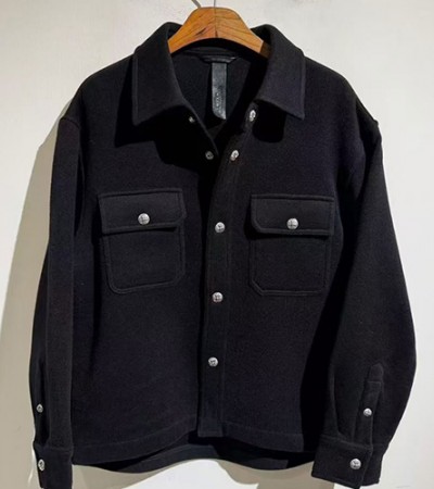 • [홍콩명품.Chrome Hearts] 크롬하츠 25SS 로고 버튼 캐시미어 카라 자켓 (블랙), BM23983, X2, 레플리카의류,미러급사이트
