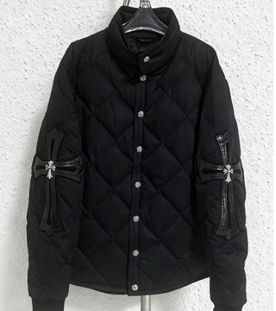 [홍콩명품.Chrome Hearts] 크롬하츠 25SS 로고 925순은 버튼 퀄팅 다운 패딩 자켓 (블랙), BM23992, X2, 레플리카의류,미러급사이트 > 남자의류