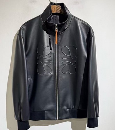 • [홍콩명품.LOEWE] 로에베 25SS 로고 터틀넥 레더 가죽 봄버 자켓 (블랙), BM24003, X2, 레플리카의류,미러급사이트