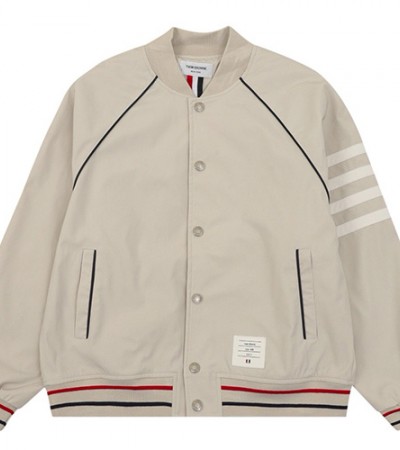 • [홍콩명품.THOME BROWNE] 톰브라운 25SS 로고 4바 봄버 자켓 (베이지), BM24041, KK, 레플리카의류,미러급사이트