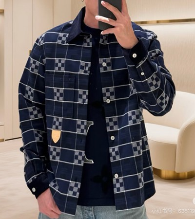 • [홍콩명품.LOUIS VUITTON] 루이비통 25SS 로고 체크패턴 울 남방 셔츠 (네이비), BM24054, KK, 레플리카의류,미러급사이트