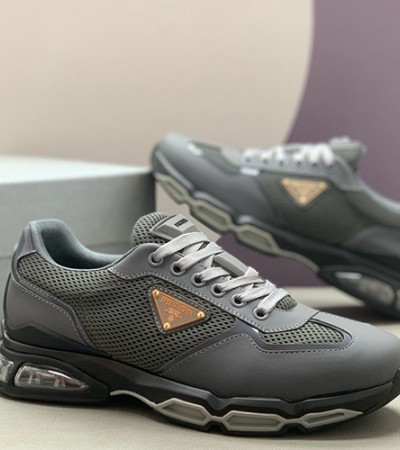 • [홍콩명품,PRADA] 프라다 25SS 삼각로고 레더 가죽 스니커즈 운동화 (그레이), SE5901, PMD, 명품스니커즈,운동화,구두,로퍼,하이탑,신발