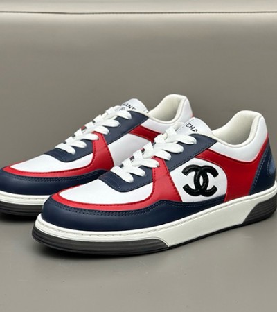 • [홍콩명품.CHANEL] 샤넬 25SS 로고 레더 가죽 스니커즈 운동화 (네이비-레드-화이트), SE5970, S3, 명품스니커즈,운동화,구두,로퍼,하이탑,신발
