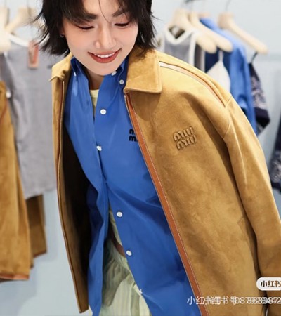 [홍콩명품,MIU MIU] 미우미우 25SS 로고 레더 가죽 카라 자켓 (카라멜), BM24074, PG, 레플리카의류,미러급사이트 > 남자의류