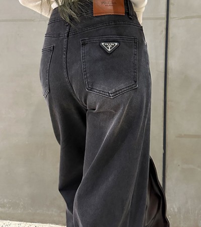 [홍콩명품,PRADA] 프라다 25SS 삼각로고 여성 오버핏 데님 팬츠 진 청바지 (2컬러), BM24100, TBG, 레플리카의류,미러급사이트 > 여성몰