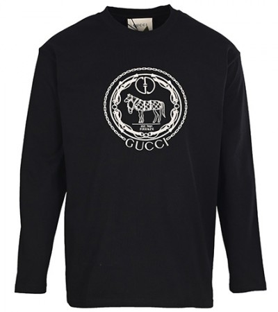 [홍콩명품.Gucci] 구찌 25SS 로고 그래픽 자수 긴팔 티셔츠 (블랙), BM24110, KB, 레플리카의류,미러급사이트 > 남자의류
