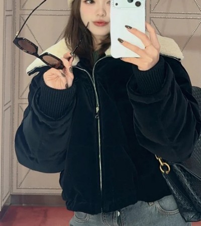 [홍콩명품.Gucci] 구찌 25SS 로고 여성 시어링 쇼트 다운 패딩 자켓 (블랙), BM24150, MC, 레플리카의류,미러급사이트 요약정보 및 구매