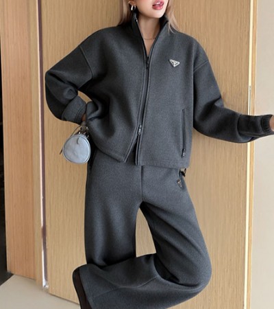• [홍콩명품,PRADA] 프라다 25SS 삼각로고 여성 트레이닝 집업 자켓 + 조거 팬츠 바지 상하의 세트 (다크그레이), BM24155, MC, 레플리카의류,미러급사이트