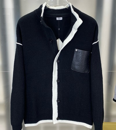 • [홍콩명품.LOEWE] 로에베 25SS 로고 터틀넥 레더 포켓 니트 가디건 자켓 (2컬러), BM24177, HH, 레플리카의류,미러급사이트