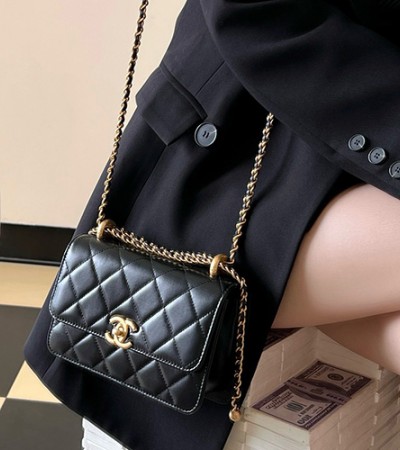 • [홍콩명품.CHANEL] 샤넬 25SS 로고 퀄팅 레더 가죽 크로스백 (블랙-금장), BGM5466, YF, 홍콩명품가방,명품쇼핑몰,크로스백,핸드백,구매대행
