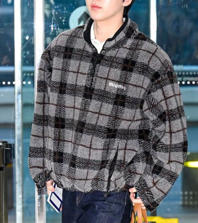 • [홍콩명품,MIU MIU] 미우미우 25SS 로고 체크패턴 플리스 집업 자켓 (그레이), BM24286, JL, 레플리카의류,미러급사이트