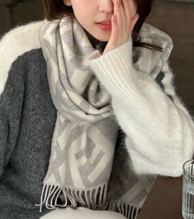 • [홍콩명품,FENDI] 펜디 26SS 로고 FF패턴 45-170 캐시미어 스카프 머플러 (그레이), ET3288, JX, 홍콩명품의류,구매대행,온라인명품