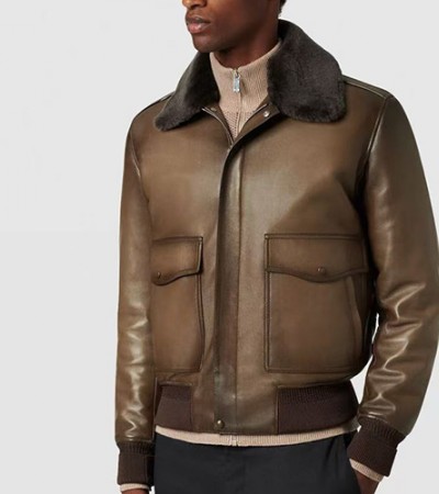 • [홍콩명품.BERLUTI] 벨루티 26SS 로고 퍼카라 레더 가죽 봄버 자켓 (브라운), BM24326, TOM, 레플리카의류,미러급사이트