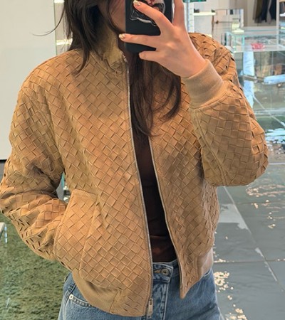 • [홍콩명품.BOTTEGA VENETA] 보테가베네타 26SS 로고 터틀넥 인트레치아토 레더 가죽 봄버 자켓 (카라멜), BM24333, TOM, 레플리카의류,미러급사이트