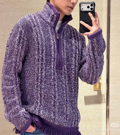• [홍콩명품.LOUIS VUITTON] 루이비통 26SS 로고 하이넥 하프지퍼 니트 스웨터 1AJUS2 (퍼플), BM24426, KB, 레플리카의류,미러급사이트