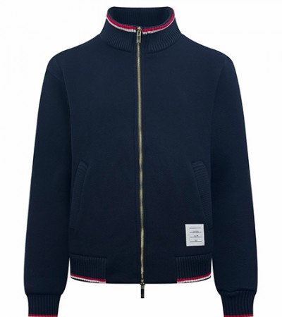 • [홍콩명품.THOME BROWNE] 톰브라운 26SS 로고 하이넥 집업 니트 가디건 자켓 (네이비), BM24445, KK, 레플리카의류,미러급사이트