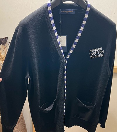 • [홍콩명품.LOUIS VUITTON] 루이비통 26SS 로고 캐시미어 V넥 니트 가디건 (블랙), BM24524, YS, 레플리카의류,미러급사이트