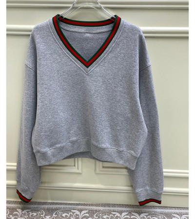 [홍콩명품.Gucci] 구찌 26SS 로고 여성 V넥 맨투맨 티셔츠 (그레이), BM24537, MC, 레플리카의류,미러급사이트 요약정보 및 구매