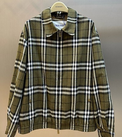 • [홍콩명품.Burberry] 버버리 26SS 로고 체크패턴 카라 집업 자켓 (카키), BM24665, KK, 레플리카의류,미러급사이트