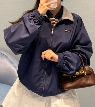 • [홍콩명품,MIU MIU] 미우미우 26SS 로고 Prelude 봄버 자켓 (블루), BM24825, KK, 레플리카의류,미러급사이트