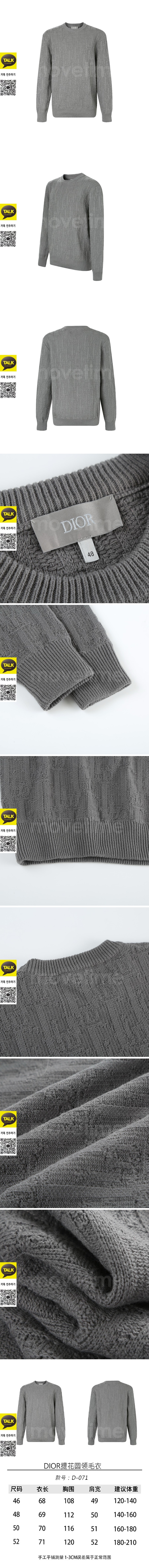 • [홍콩명품,Christian Dior] 디올 26SS 로고 오블리크 니트 스웨터 (그레이), BM24850, JL, 레플리카의류,미러급사이트