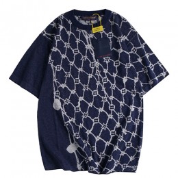 [홍콩명품.LOUIS VUITTON] 루이비통 24SS 로고 모노그램 패턴 니트 반팔 티셔츠 (네이비), BM16014, JU, 홍콩명품의류,구매대행,온라인명품