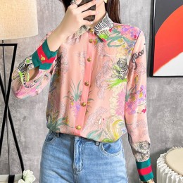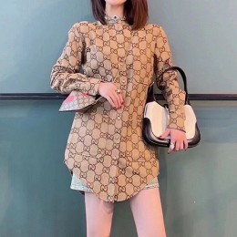 [GUCCI] 구찌 22SS 여자 봄여름 그래픽 카라 남방셔츠 WM406,BR,홍콩명품,무브타임,여성,여자명품쇼핑몰